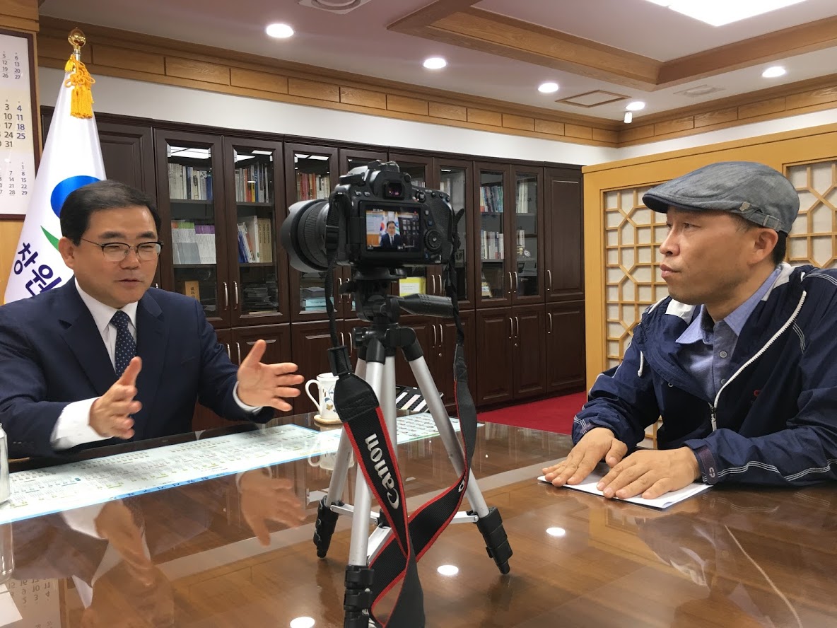 참, 사진은 허성무 창원시장을 인터뷰 중인 김욱 후원회원의 모습입니다.