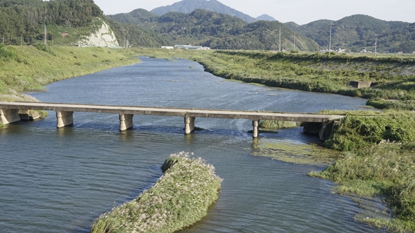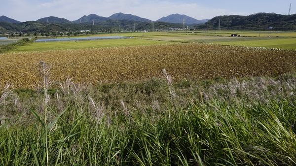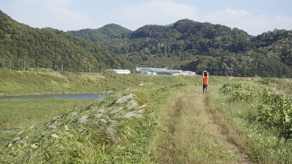 여기를 벗어나니 바로 시골 경관이 펼쳐진다. 추석 지나고 갔더니 가을이 막 시작된 덕분에 멋진 모습이 곳곳에서 눈에 담겼다. 먼저 세월교 부근(칠서면 구포리 1089-2)이 그럴듯했다. 비가 많이 오면 물에 잠기는 조그만 콘크리트 다리인데 하류 2㎞가량 지점이었다.