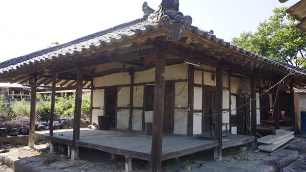 가장 색다른 것은 안채였다. 좁은 공간에 지붕기울기를 지나치게 가파르지 않게 하려다 보니 그렇게 된 것 같았는데 먼저 용마루가 지나치게 짧았다. 부엌도 좌우에 하나씩 방을 끼고 만들어져 있어서 한 쪽으로 치우쳐 있는 여느 경우와 달랐다. 방 두 개에 앞마루를 달아붙인 것은 예사로웠지만 한가운데 대청이 없고 대신에 안채 왼쪽 전체의 4분의1이 대청마루여서 독특했다.