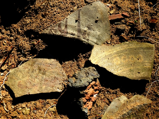 질그릇을 굽는 가마도 있었다. 산간과 바닷가로 두루 팔려나갔을 것이다. 이번에 축동면 반용리 729-1(반룡길 26-174) 언저리에서 가마터를 확인할 수 있었다. 일대는 차진 황토로 뒤덮여 있었다. 그런 사이로 그을음이 검게 끼인 흙구덩이가 보였고 주변에는 질그릇 조각이 여럿 흩어져 있었다.