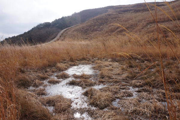 억새평원은 짐승들 보금자리다. 용지를 비롯한 여기 물가를 뒤적여보면 짐승 똥이나 발자국이 여러 군데 눈에 띈다. 수풀에 있다가 나와서 물을 마신 흔적이다. 덤불에서 쉬고 머물고 잠자고 바람과 눈·비도 피한다. 덤불에는 새순·씨앗·잎사귀와 벌레 등등 먹이가 풍성하다. 억새 태우기는 그러니까 이런 동물들에게 안방을 불태우고 이불을 걷어차고 밥상을 엎어버리는 패악질이었던 셈이다. 불길이 지나가고 1년이 지난 뒤 용지 둘레 억새평원를 찾아 올라갔던 적이 있다. 2010년 2월의 일이다. 예상한대로 멀쩡했다. 탄내도 가셔져 있고 포기까지 타버린 갈대와 억새도 다시 무성해져 있었다. 숯이 되었던 찔레도 다시 자라나 있었다. 둥지를 잃어 떠나야 했던 새들과 토끼들도 돌아왔다. 맵새는 덤불 사이로 낮게 날았고 꿩은 곳곳에서 푸드득거렸다. 토끼와 고라니 등의 똥도 여러 곳에서 눈에 띄었다. 용지는 여전히 식물들에게는 뿌리를 적셔주고 동물들에게는 목을 축여주고 있었다.