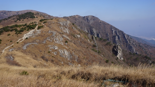 그런데도 “억새밭이 만리성 안에” 있기 때문에 불이 산 전체로 번지지 않았다. 만리성은 단조성(丹鳥城)의 다른 이름이다. 언제 쌓았는지는 알려져 있지 않다. 너비가 5~10m이고 높이는 1~4m이다. 이런 돌무더기가 억새밭을 둘러싸고 있으니 마음 놓고 불을 질러도 되었던 것이다. 단조성은 조선시대 지리책 <신증동국여지승람> ‘언양’편에도 나온다. 언양이 지금은 울산광역시 울주군 언양읍으로 되어 있는데 양산 북쪽에 바로 붙어 있다. “취서산 고성(鷲棲山 古城):산 위에 있는데 단조성(丹鳥城)이라 일컬었다. 둘레가 4050자이다.” 취서산은 영축산의 다른 이름이다.