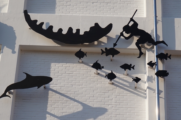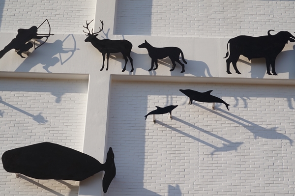 유물이 나오기 전 유수지였던 데는 흙으로 덮고 잔디를 깐 다음 호랑이·멧돼지·사슴 모형을 세웠다. 건물 겉면은 여기서 출토된 여러 토기 무늬와 멧돼지 모양을 재현해 놓았다. 잔디밭에 내려가면 마주 보이는 벽면에는 신석기인들의 모습, 들판에서 사냥하는 수렵과 바다·강에서 물고기를 잡는 어로, 나무와 풀에서 열매나 씨앗을 거두는 채집도 나타내었다.