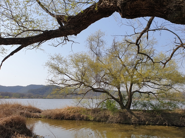 왕버들군락은 우만제방(이방면 안리 1561-3)을 검색하면 된다. 들어갈 수는 없지만 보는 것만으로도 아늑하고 그윽하다. 우만제방은 그늘이 시원스러워 안온한 왕버들과 잔잔한 습지 풍경을 누릴 수 있다.