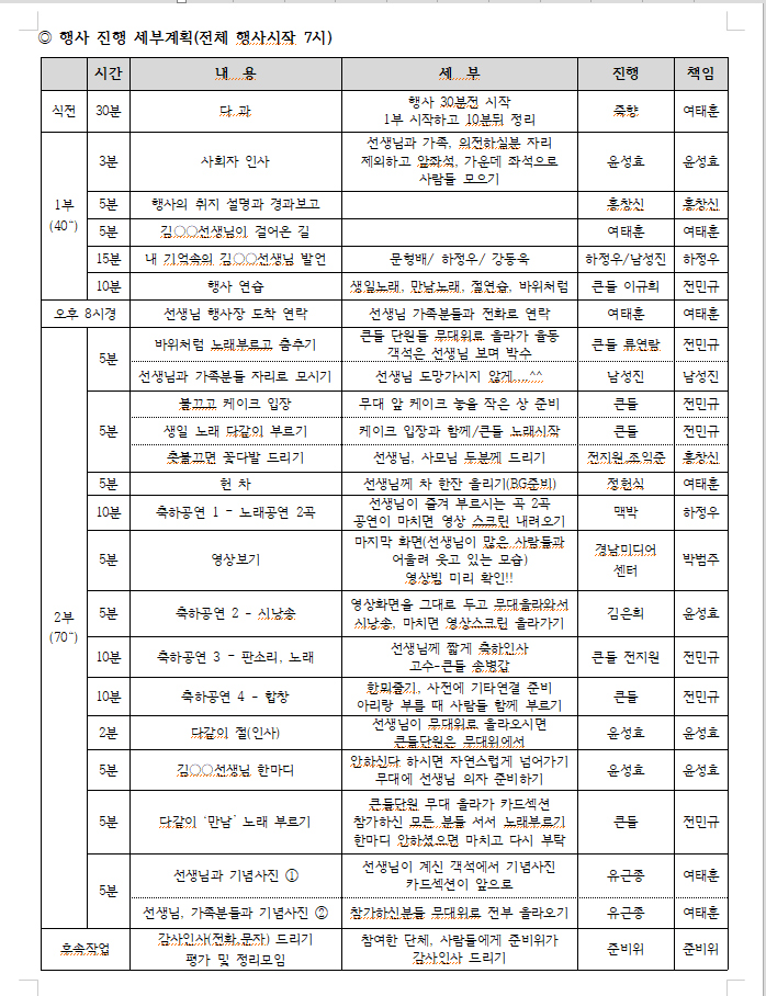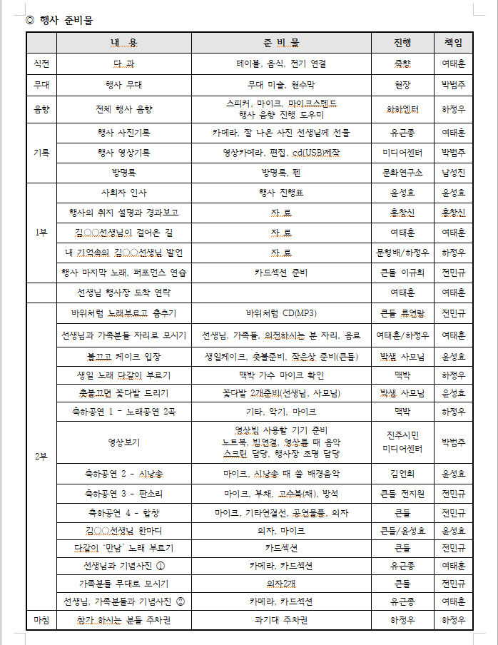 당시 계획서를 보면 얼마나 세밀하고 치밀하게 행사가 준비되었는지 알 수 있다. 기록으로 올려둔다.